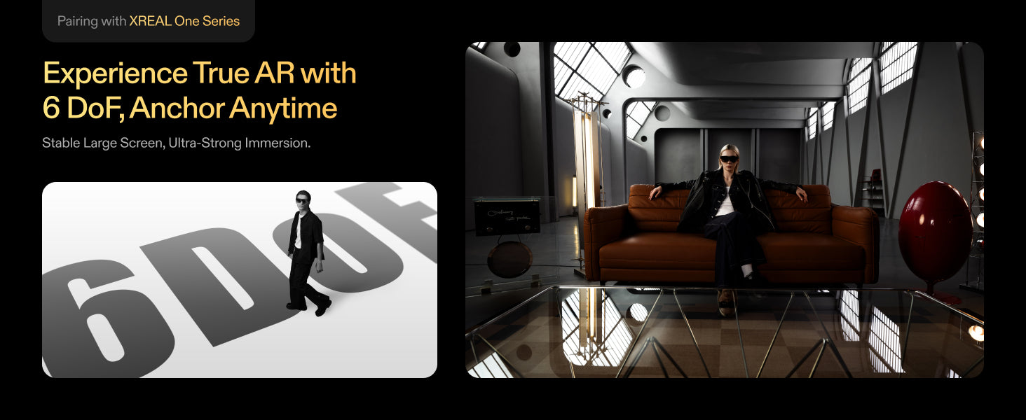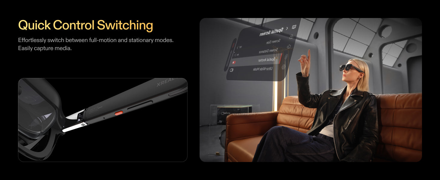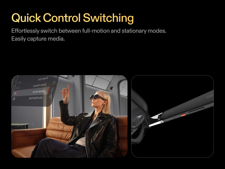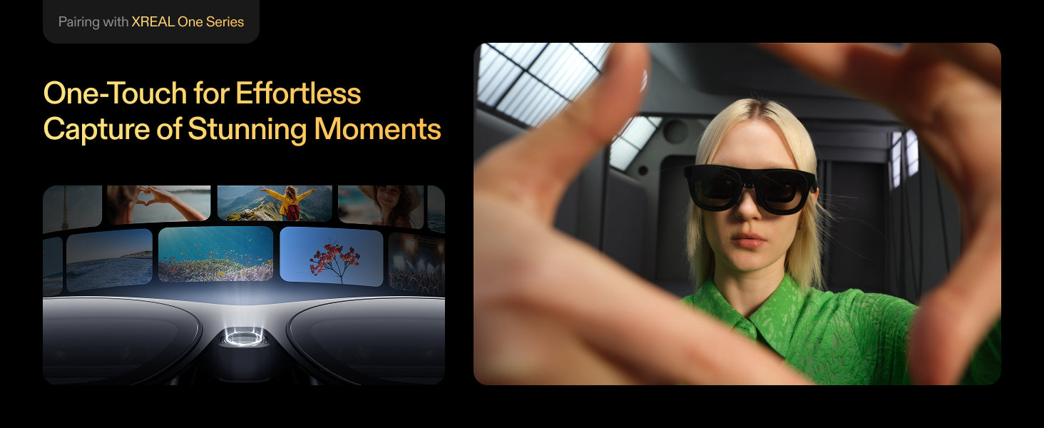 *XREAL Eye can be used to take pictures with XREAL One Glasses, however XREAL Beam Pro is required to shoot a mixed-reality video.