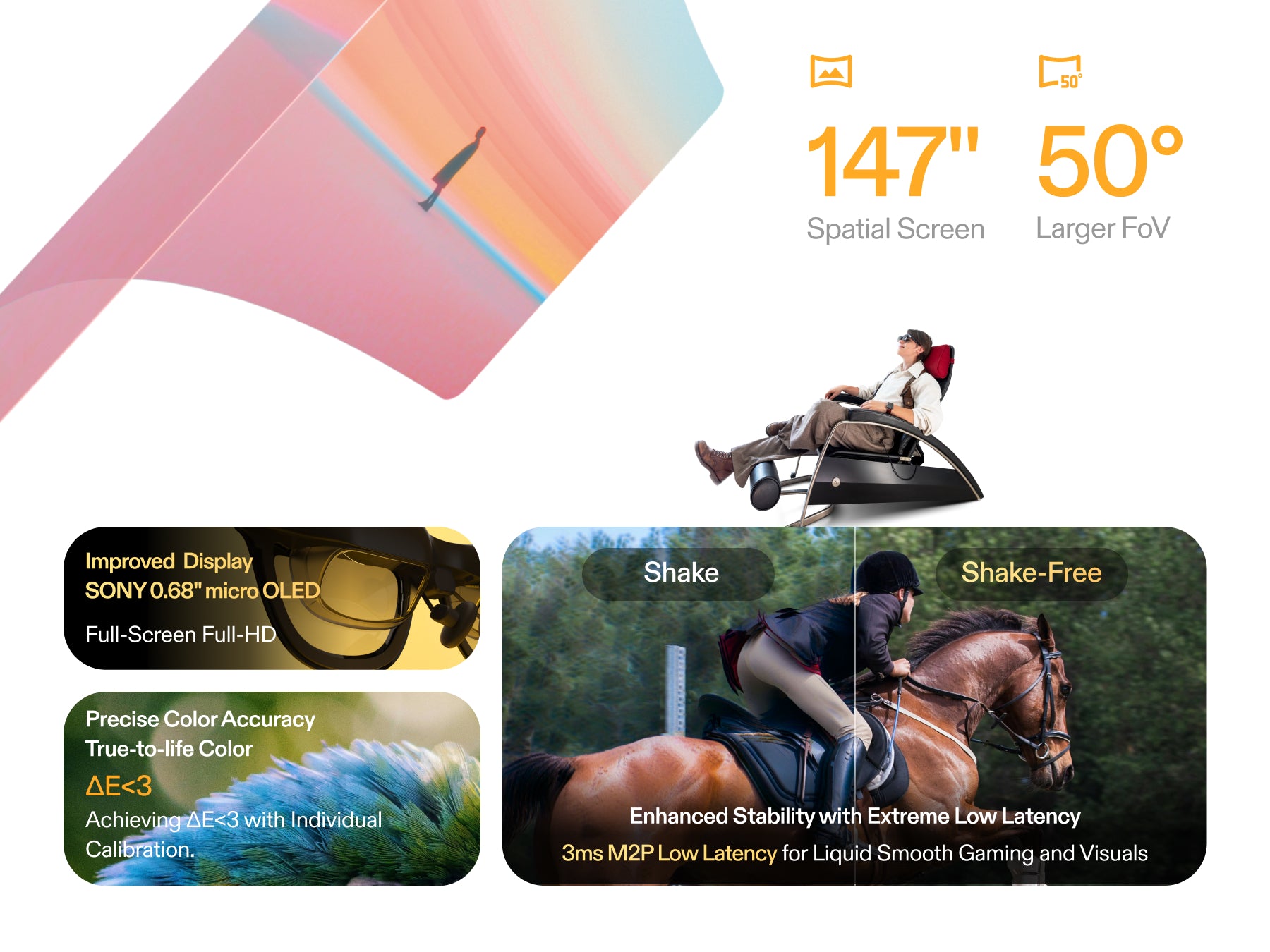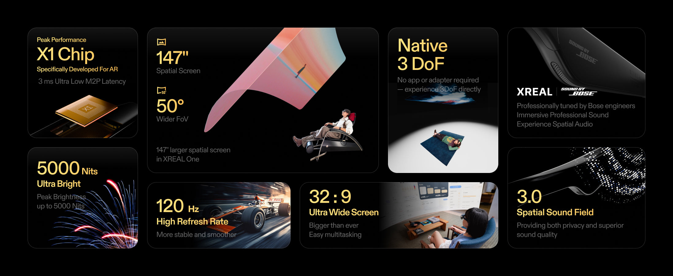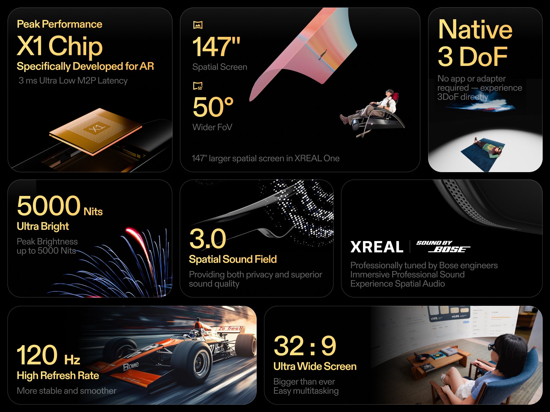 Both XREAL One and XREAL One Pro are advanced, AR devices with a built-in chipset that has revolutionized spatial displays. Compared to the XREAL One, the XREAL One Pro has a larger FOV (field of view), with a marginally brighter virtual screen, both of which enhance the visual experience.XREAL One Pro features a new and improved display system that significantly reduces outside light interference during use and reduces the image reflection sometimes seen on the front of the glasses, protecting user privacy.Additionally, XREAL One Pro features thinner and more lightweight front frame, giving it an inconpicuous appearance.XREAL One Pro offers multiple interpupillary distance (IPD) options to accommodate users with different IPD needs.
